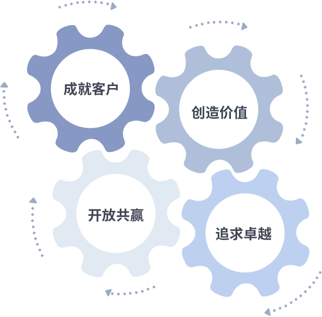 成就客户是一切决策的出发点,创造价值是衡量所有工作的标准,追求卓越是德扑之星做事做人的态度,开放共赢是德扑之星的格局也是最终的结果。价值观的齿轮环环相扣,推动着组织里的每个人不断向前。